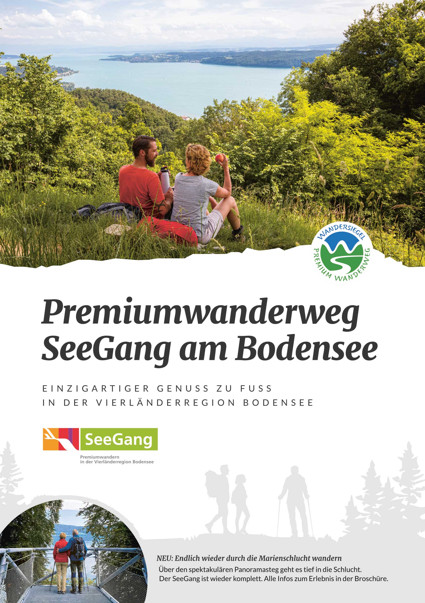 Endlich wieder durch die Marienschlucht wandern. Faltkarte mit Informationen zum Premiumwanderweg SeeGang zwischen Überlingen und Konstanz (gesamter Streckenverlauf und einzelne Etappen). Auch Wissenswertes zu Sehenswürdigkeiten, Einkehrmöglichkeiten sowie Schiffs-, Bus- und Bahnverbindungen am Wegesrand sind enthalten.